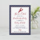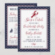 Celebrate your Bride-to-Be in true maritime style! This beautifully designed, double-sided invitation is the perfect "catch" for any coastal bachelorette party. Featuring a classic navy blue and white polka dot border and elegant red and navy blue typography, this invitation sets a sophisticated yet playful tone for your celebration. The front of the invitation features a cute lobster with the tagline: "She's a Catch" while the coordinating back of he invite showcases a full weekend itinerary of fun filled events, from the "Reel Good Time" arrival to the "Nautical Brunch" and the "Last Dip & Depart," with matching custom icons... a fishing pole, sailboat, and fish, reinforce the charming nautical theme. What better way to keep your "I do" crew informed and up-to date with all the special party deets. All of the wording on the invitation is fully customizable using the Zazzle tool, so it couldn't be easier for you to make this invite your own. This invitation is perfect for a "Last Sail Before The Veil", "Last Toast On The Coast" or a "Nauti Bach" party weekend, so get ready to make some waves and let the shore-nanigans begin!