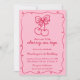 Celebrate a very sweet milestone with this She’s Our Little Cherry On Top girl’s 1st birthday invitation, designed to be playful, charming, and picture-perfect for a first birthday celebration. Featuring a delightful pink and red color palette, coquette cherry illustrations, and a whimsical squiggle-style frame, this invitation sets the tone for a joyful, love-filled party honoring your little girl.
