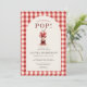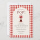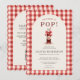 Fun all in one Shes Ready to Pop baby shower invitation featuring a charming gingham design and playful pop theme. Perfect for hosting a cheerful baby shower with a cozy, country inspired style. Ideal for keeping event details together in one convenient card for guests. Editable text. Print ready layout.