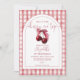 This stylish birthday invitation, featuring cherries and bow, elegant script typography and arch on a gingham background, can be personalized with all your special event details. Designed by Thisisnotme©