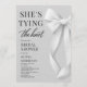Celebrate the bride-to-be with this elegant “She’s Tying the Knot” bridal shower invitation featuring a soft white satin bow and clean modern typography. The light neutral background adds a timeless, romantic feel while keeping all event details clear and easy to read. Perfect for classic, modern, or ribbon-themed bridal showers. Fully customizable and print-ready for any wedding celebration.