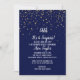 Este Shhh É um convite de festas de aposentadoria Surpresa é perfeito para uma comemoração de aposentadoria clássica. O design apresenta um confete dourado falso sobre um fundo azul marinho com uma caligrafia branca elegante.