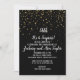 Este convite de festa de aniversário Shhh É uma Surpresa Confete Dourado em Preto é perfeito para uma celebração de aniversário de casamento surpresa e sofisticada. O design apresenta confetes dourados falsos em um fundo preto com caligrafia branca elegante.