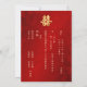 Esta versão tem uma manchete para anunciar o casamento dos pais da noiva e do noivo. Este elegante convite para o casamento chinês mostra um símbolo de dupla felicidade de ouro artístico em um fundo floral vermelho de shimmering. Nomes de noiva e noivo em um elegante roteiro escrito à mão. Convite para casamento chinês ou convite para cerimônia de chá.