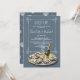 Celebrate love with this elegant coastal-inspired couples wedding shower invitation. Featuring a platter of oysters, a chilled bottle of champagne, and a sea-inspired shell border, this design captures the perfect balance of romance and seaside charm. With its soft blue-gray background and gold-accented details, it’s ideal for beach, nautical, or seafood-themed celebrations.