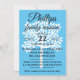 Convite de reunião da família azul Sky com uma silhueta de árvore branca e campos de texto personalizáveis para todas as suas informações de reunião.