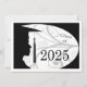 Uma silhueta de um jovem em seu boné e vestido. Designs florais no fundo. O fundo tem um fundo preto com letras brancas para os convites de festa de formatura.