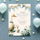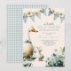 Celebrate your little silly goose with this irresistibly cute boy baby shower invitation. The front features a warm cream background with soft watercolor bunting adorned with daisy florals, a sweet gosling gazing up at its mama goose, and charming, whimsical details that feel both playful and heartfelt.
