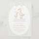 Silly Goose Baby Shower Invitation with sage green hand drawn stripes. A cute Mother Goose themed Baby Shower invitation for your Baby Shower.