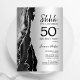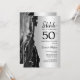 Preto e prata agam surpresa no 50º convite de aniversário. Elegante design moderno com fundo geode de pedra de pedra marmortal, letra falsa prata brilhante e script de tipografia. Trendy convida o cartão perfeito para uma comemoração de dia das mulheres na moda. Impressos convites Zazzle ou modelo de impressão digital instantânea para download.