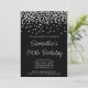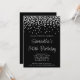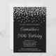 Convite de aniversário vertical de marco personalizável, 5 horas por dia, 7 dias por semana, para sua comemoração de 50 festas de aniversário. Falso cintilador prateado pálido confete contra preto sólido. Você pode mudar a cor da cinza da bonita caligrafia moderna do estilo escrevendo de mão. As cores principais são preto, branco, prata e cinzas.