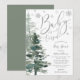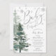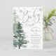 Um bebê está a caminho e está frio lá fora! Jogue um maravilhoso chá de fraldas de inverno com este convite personalizado. Design apresenta uma fonte moderna de escrita de caligrafia, flocos de neve e árvores de floresta de aquarelas. Personalize facilmente este modelo de convite para chás de fraldas neutro em termos de gênero usando as ferramentas online. FOLHA DE PRATA NÃO REAL