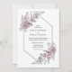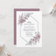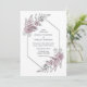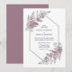 Um convite de casamento elegante, cor-de-rosa e cinza, com folhas de samambaia e margaridas, guardadas por uma simples esquadra falso.