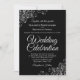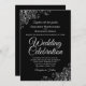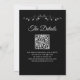 Este belo convite de casamento é na moda, simples e elegante. Ele apresenta uma letra de cinza prateada pálida em um fundo preto clássico com um filtro de folha fina prateada em cada canto. A design subestimada é compensada pelas ampolas e espirais do trabalho de arte. A parte traseira tem um código QR personalizável e uma nota de detalhes para que você possa direcionar seus convidados para um site para informações e RSVP.