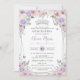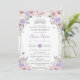 Personalize este elegante convite floral Quinceañera / Sweet 16 aniversários fácil e rapidamente. Basta clicar no botão Editar usando ferramentas de Design para editar os textos, alterar as cores das fontes e das fontes. Apresentando uma pincelada de aquarela macia, rosa poeirado, lilás roxo, flores brancas, uma coroa princesa prateada e borboletas. Todo texto é editável. Perfeito para quinceanera, doce dezesseis, 18º aniversário, bola de debutante e muitas outras ocasiões! Itens correspondentes disponíveis no repositório. c) Paperie fina somerset