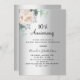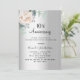 Um fundo de olhar mal prateado. Decorado com uma flor branca, uma flor de pénia e um eucalipto verde de cor aquosa. Personalize e adicione seus nomes e detalhes