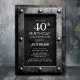 Convite Silver Frame Black Slate 40th Birthday Party