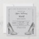 Um convite de aniversário para as mulheres, com uma bonito imagem de um boque de na moda de cor prateada na frente. O reverso tem o mesmo brilho do boque com a imagem adicionada de um quadro correspondente com 2/2 belos calçados de salto alto com brilho prateado. Todo texto, fonte e cor da fonte são totalmente personalizáveis para atender às suas necessidades. Se você quiser ajudar a personalizar, ou quiser fazer a correspondência de produtos, entre em contato comigo através da minha loja e eu ficarei muito feliz em ajudá-lo. Posh na moda, design de moda para aniversários com brilho e glamour. QR-CODE pode ser adicionado se desejar para obter informações adicionais.