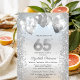 Convite Silver Glitter Confetti Balões 65.o Aniversário