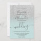 Grey silver glitter ombre sage green script chic wedding with an elegant silver sparkles glitter ombre gradient on an editable pastel green with an elegant and modern script calligraphy.