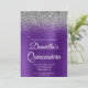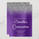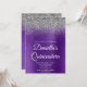 Crie seu próprio convite para comemoração de 15 de na moda para sua filha. Faux decorativo gráfico cintilante prateado como borda superior. A arte digital de fundo apresenta uma folha de metal roxo roxo roxo e roxo, brilhante, estilo ombre. Personalize a cor do texto branco do convite ou os estilos de fonte. O texto "Quinceañera" também é personalizável. Os faíscas, brilho e folha de luxo serão criados por elementos artísticos que impressão gostam de uma foto.