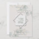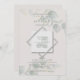 CONVITE DE CASAMENTO | Folhas de eucalipto prateado em aquarelas em verde-sábio e transparências de folhas de eucalipto salgado com uma caixa de prata geométrica central a um ângulo de 45 graus com um prato branco quadrado - todas colocadas sobre um fundo bege latto quente. Uma combinação de caligrafia escrita à mão e texto sem serifa torna isso elegante e moderno. Outro design de noiva criado por © WhimsicalArtwork™