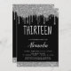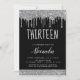 Garota Glitter Glitter e Silver Negra está se tornando um 13 13 (Treze) Convite de aniversário. Este é o 13 perfeito para crianças - fazendo Treze Meninas de Aniversário Convidando para uma Festa de aniversário Moderna de Brilhante e Brilhante. Entre em contato com o designer para encontrar itens personalizados correspondentes.