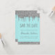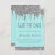 Silver e Teal Aqua Robin's Egg Blue Sparkle Drips Glitter Sweet 16 - 16 Festa de aniversário de Rapariga Salvem o Convite para Data. Este convite é perfeito para a 16ª Festa de aniversário do Sparkle Glitter Sweet que procura celebrar no estilo elegante e moderno.