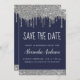 Silver e Marinho Blue Sparkle Glitter Doce Dezesseis - Festa de aniversário de 16 Meninas Salvem o Convite para Data. Este convite é perfeito para a 16ª Festa de aniversário do Sparkle Glitter Sweet que procura celebrar no estilo elegante e moderno.