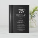 Invite your friends and loved ones to your birthday celebration with this modern silver striped black and grey 75th birthday party invitation. The customizable text area in this invitation template allows you to include all the necessary details for your special birthday celebration, including the date, time, venue, and RSVP information. A variety of paper types and corner styles are available for your unique invitations, along with the option to download if you prefer a digital format.