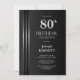 Convite Silver Striped Black Grey 80th Birthday Party