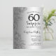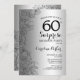 Silver Surpresa 60º Convite de aniversário. Design de Glam feminina com folha de falso prata, sotaque botânico e letra de script de tipografia. Simples cartão de convite floral perfeito para uma festa surpresa na moda. Pode ser personalizado para qualquer idade. Impressos convites Zazzle ou modelo de impressão digital instantânea para download.