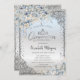 Convite Silver Tiara, Diamantes Flores Azuis Quinceañera