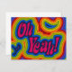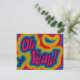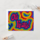 Anúncio ou Convite com Oh Sim! com espirais de desvio psicodélico em cores arco-íris