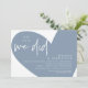 Anuncie e partilhe a sua alegria para sempre em estilo com o nosso azul empoeirado moderno, com o design do tema de fundo de forma cardíaca (Oh Sim nós fizemos) do elopemento de casamento. É ideal para casais que decidiram celebrar o seu melhor dia. Com seu design sofisticado, mas lúdico, este convite certamente define o tom de um evento inesquecível. O convite apresenta um tema de design de roteiro moderno e minimalista, acrescentando um toque de elegância do eterno à sua celebração. Projetado por TeeshaDerrick