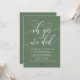 Marque o começo de sua eternidade com elegância usando nossa estética contemporânea, sábio verde, tema de casamento, convite para comemoração, "Oh, sim nós fizemos". Perfeito para os casais estendendo sua alegre ocasião, este convite exude sofisticação com uma sugestão de brincadeira, definindo o palco para um evento memorável. Adorado com um tema design de roteiro moderno de eterno, ele adiciona um toque de encanto refinado às suas festividades. Feito por TeeshaDerrick, este convite promete capturar maravilhosamente sua história de amor.