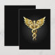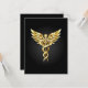 Símbolos caduceus poligonais dourados em fundo preto isolado. Símbolo de medicina low poly.