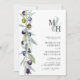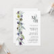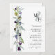 Olive Branch Symbol of Love Monograma Wedding Invitation com QR Code RSVP no Back... A frente do nosso convite de casamento monográfico botânico apresenta as iniciais da noiva e do noivo sobrepostas em uma amostra pastel acima do texto de convite personalizado em serif negra e sans serif typografia em fundo branco. Ao lado do texto do convite à esquerda está um belo galho de oliveiras em tons de verde empoeirado, azul escuro e roxo. A parte de trás do convite inclui o código QR do seu site de casamento, bem como o URL do site, permitindo que os seus convidados RSVP online sejam facilmente consultados e visualizem todos os detalhes normalmente enviados em um pacote de casamento. O exemplo de código QR e todo texto de exemplo (além do texto de ampersand e elementos de caligrafia) podem ser facilmente revisados com suas próprias informações sobre o modelo de personalização.