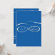 PALETA DE CORES: azul safira cobalto no horizonte e branco suave. COLEÇÃO DE DESIGN: Linhas modernas gráficas simples, limpas e ousadas com uma elegante tipografia vintage em Caligrafia Script para um casal de estilo informal. Este conjunto foi desenhado à mão e projetado graficamente pela designer de casamento personalizada Audrey Jeanne Roberts. As iniciais monogramadas do noivo e da noiva estão no símbolo do infinito. A moda trendy e elegante das Tatuagens de Infinito para o seu anel de casamento combina perfeitamente com este convite sofisticado. O verso tem outro design de Amor infinito com floreios de pergaminho em caligrafia divertida. Este conjunto de convite de casamento está disponível em qualquer combinação de cores se nos contatar através do formulário de mensagem.