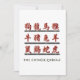 Em três cores! Temos toda a linha de símbolos do Zodíaco Chinês, desde o Ano do Cachorro ao Ano do Tigre apresentado nesta design de celebração do Ano Novo Chinês excelente. Com letras douradas e letras vermelhas chinesas, você escolhe a cor de fundo! Considere esses envelopes dramáticos também, para uma visão completa.