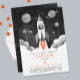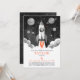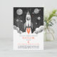 Convite Simple Black White Rocket Ship Moon Galaxy Photo