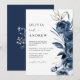 Convite Simple Elegant Navy Blue Boho Floral Wedding