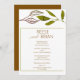 This beautiful and simple wedding invitation is perfect for the minimalist. It brings the elements of nature with the brown and green leaf overhanging the top. Personalize this invite to make it simple for your guests to find all the information needed to attend and celebrate this special event.