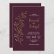 Convite Simple Modern Gold Leaf Burgundy Wedding