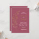 Simple Modern Minimalist Gold Leaf Rose Wedding Invitation.