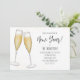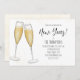 This design features a watercolor simple new years eve day party champagne wine celebration festive invitation, trendy stylish gold bubbly toast, a watercolor champagne flute glasses glass, elegant calligraphy script text font, a whimsical typography style design, a modern Christmas holiday glitter, classy-vintage retro cute simplistic, family friends get together party, new years eve invitations