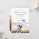 Introducing a uniquely personalized wedding invitation that perfectly marries elegance with cherished memories. The top half of this exquisite invite showcases your wedding details in a stunning combination of elegant script for the introductory and reception information, and timeless serif font for the remaining text, creating an air of sophistication and grace. Below, the invitation becomes truly yours with the addition of your chosen photo, adding a personal touch that will captivate and delight your guests. This invitation is not just an announcement, but a beautiful keepsake, reflecting the special bond you share.
