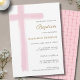 Simple Watercolor Pink Cross Girl Baptism Invitation
