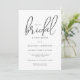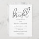 Um convite à noiva elegante ou chá com apelo minimalista, este design apresenta um texto moderno escrito à mão que soletra a palavra "noiva" no estilo contemporâneo. A palavra "almoço" é usada neste exemplo. Você pode personalizar isto com "chá" se quiser usar este design para um chá de panela. Uma face serif nítida é emparelhada com o moderno script manuscrito, resultando em um olhar moderno minimalista. O fundo do convite tem um fundo de mármore branco.