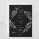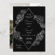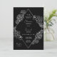 Este convite apresenta uma elegante caligrafia e uma simples fonte de tipografia com um fundo preto, juntamente com uma bela estrutura floral de arte em losango e um código de fotografia e QR. A simplicidade e a design limpa deste convite funciona bem com todos os temas de casamento e definitivamente uma adição excelente ao seu casamento. Basta personalizar os nomes e o texto em alguns passos fáceis e personalizar o cartão de convite com sua foto do casal feliz e substituir o Código QR pelo seu no verso do convite para dar um toque pessoal agradável ao seu convite. Por favor, note: o quadro floral de linha de diamante e o trabalho de arte gráfico de buquê floral e o roteiro elegante de caligrafia "gentilmente", "recepção" e "junte-se a nós para o casamento de" e "para seguir", "Details+rsvp" junto com as linhas na frente e no verso e outros elementos gráficos de trabalho de arte não podem ser editados, movidos ou excluídos. Eles são fixos. Se precisar alterar a cor, você pode personalizar o cartão de convite. Você pode personalizar e personalizar o convite para ajustado das suas necessidades de evento de casamento e clicar em personalizar o convite. Você pode personalizar facilmente o convite com o texto como um download digital e enviá-lo eletronicamente e compartilhá-lo com seus convidados através de mensagem de texto, email ou mídia social. Ou também pode optar por enviar/postar o convite relativo aos seus detalhes aos seus convidados. Ou você pode receber ambos — convite impresso e receber o convite em formato digital como um download instantâneo.